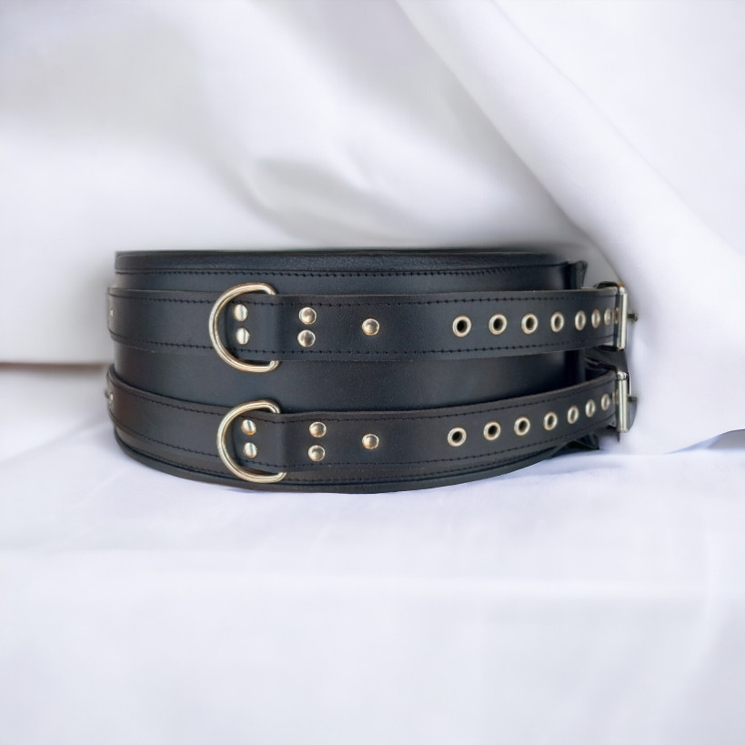 A 12 cm széles kialakítás kiemelkedő tartást biztosít, miközben a belső puha bőr bélelés kényelmes viseletet garantál hosszabb használat során is. Az állítható méret és a több D-karika lehetővé teszi, hogy a derékbilincs egyedi igényekhez szabható legyen. Ideális bondage játékokhoz és más BDSM kiegészítők rögzítéséhez.