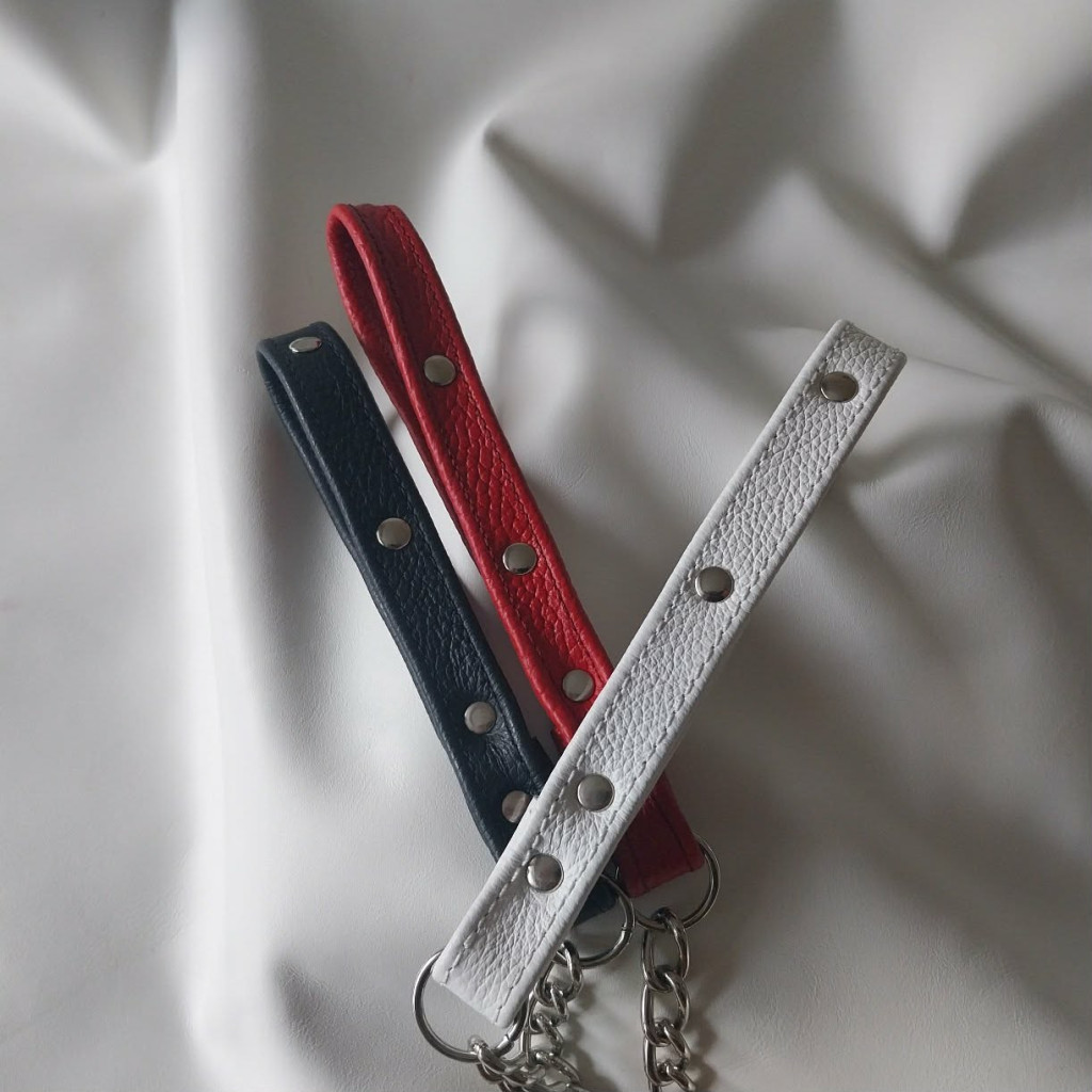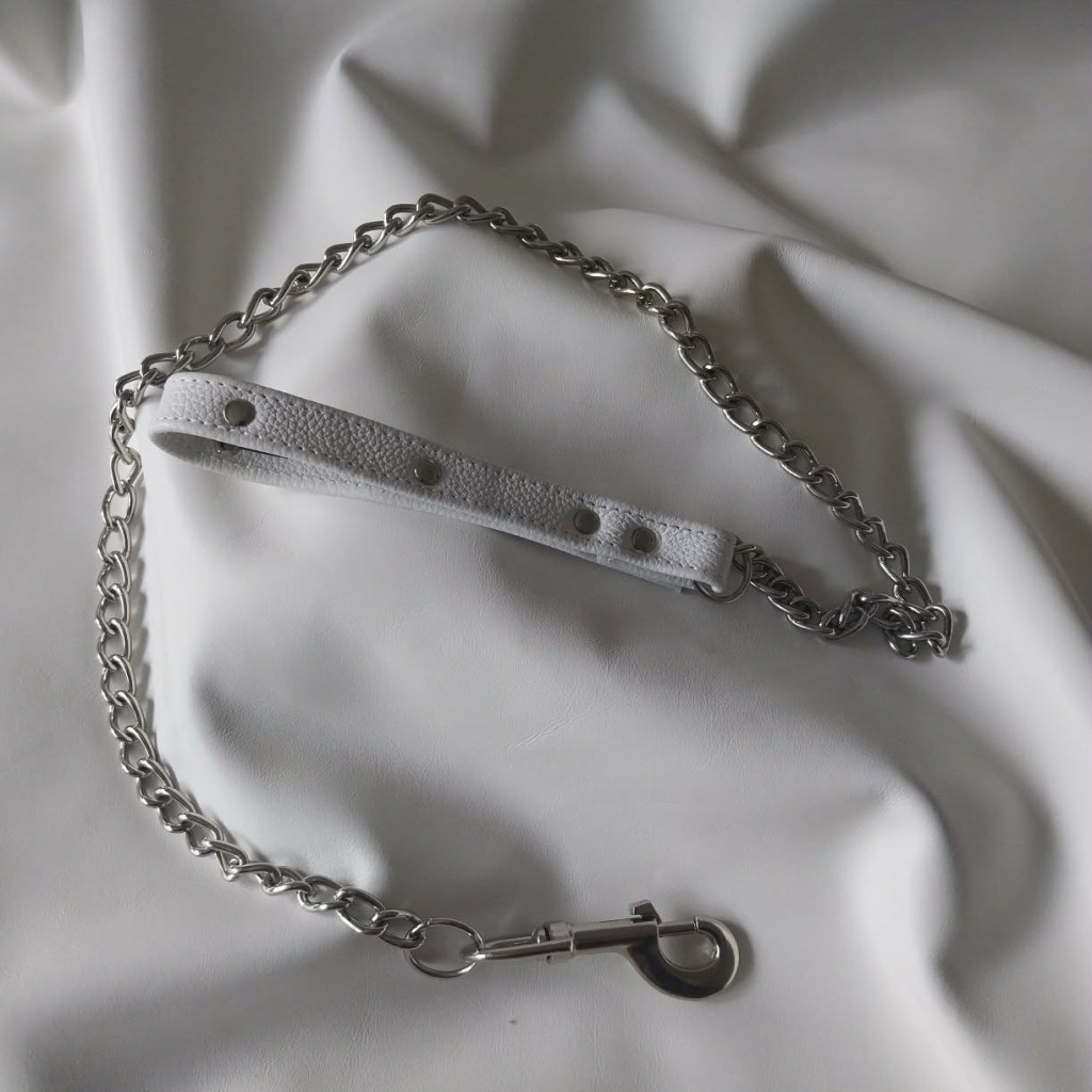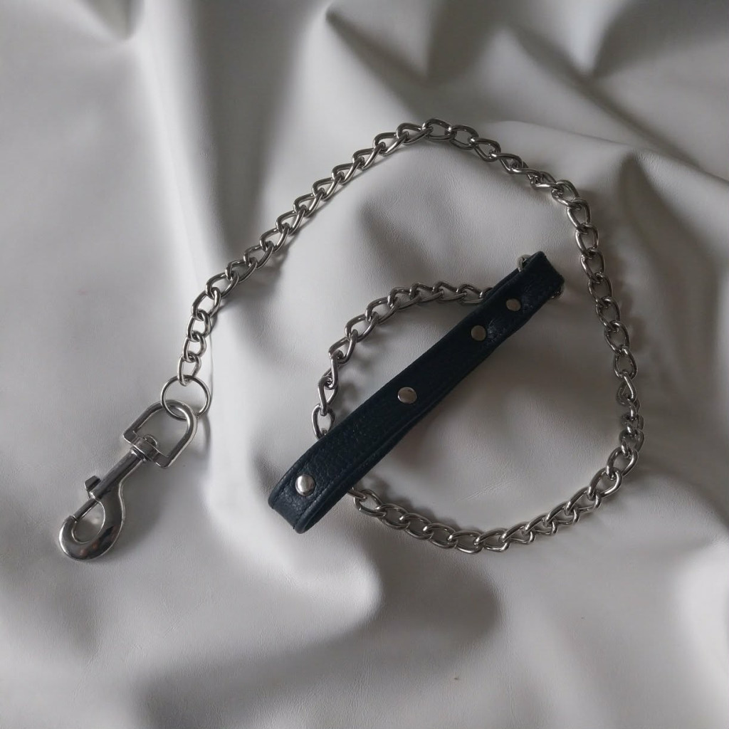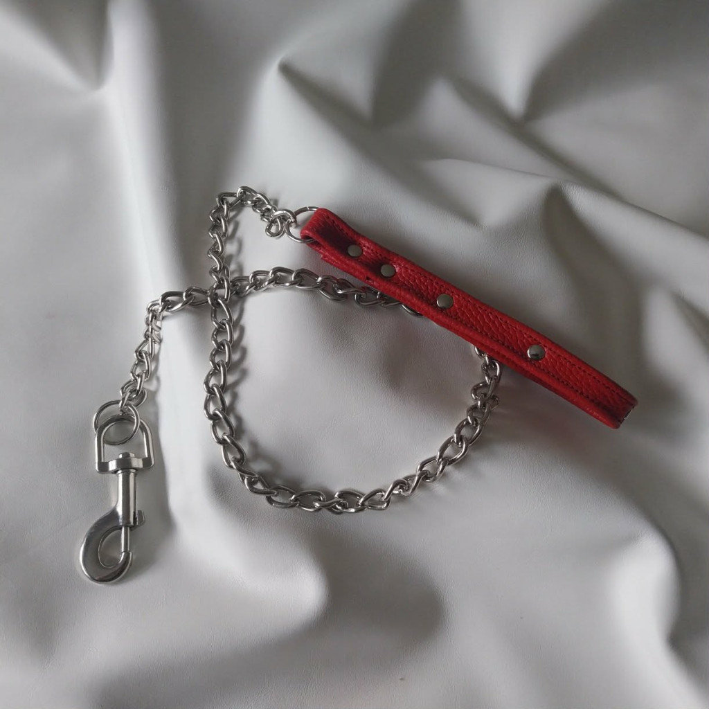 Diese Leine ist ein hervorragendes BDSM-Accessoire, auch für ein Rollenspiel, aus echtem Leder und rostfreien Materialien. Die Länge der Kette beträgt 1 Meter, zuzüglich Griff und Karabiner. Der Ledergriff ist in zwei Farben erhältlich. Schwarz und Rot.