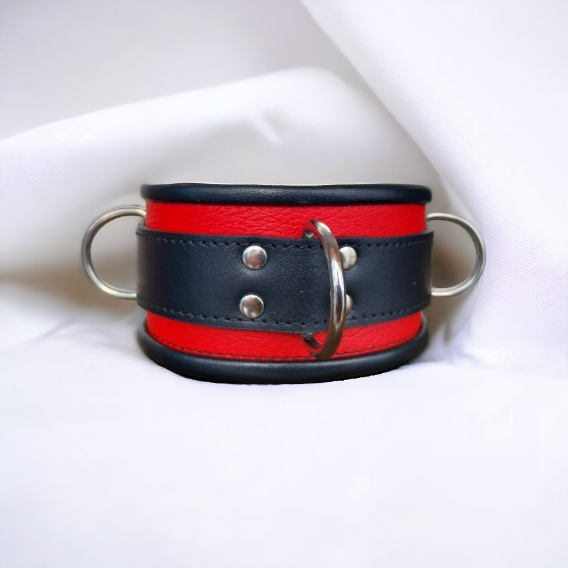 This red premium leather neckcuff is a visual expression of submission. If you’re looking for a bold, sturdy fetish accessory that is both striking and functional, this piece was made for you.