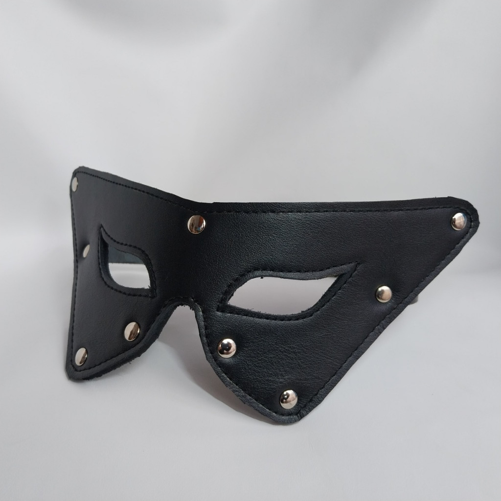 Ez a fetish szemmaszk valódi bőrből készült, belül szintén bőr béleléssel. A két réteg bőr közé neoprént tettünk, amely hozzájárul a maszk kényelméhez. A hátul található csat segítségével könnyedén állítható, biztosítva a tökéletes illeszkedést. Elöl néhány szegeccsel díszítettük, ami tovább fokozza az esztétikai vonalat.