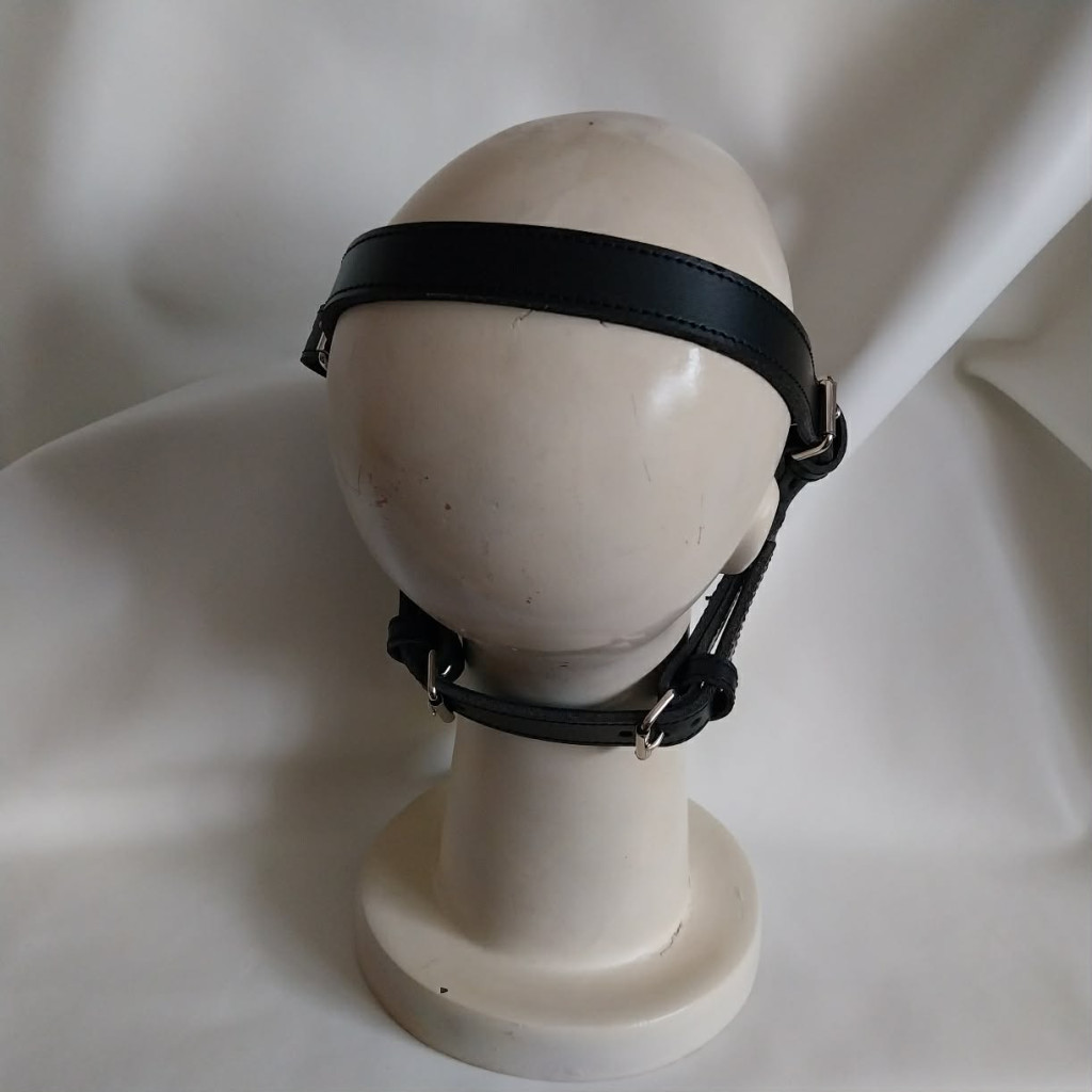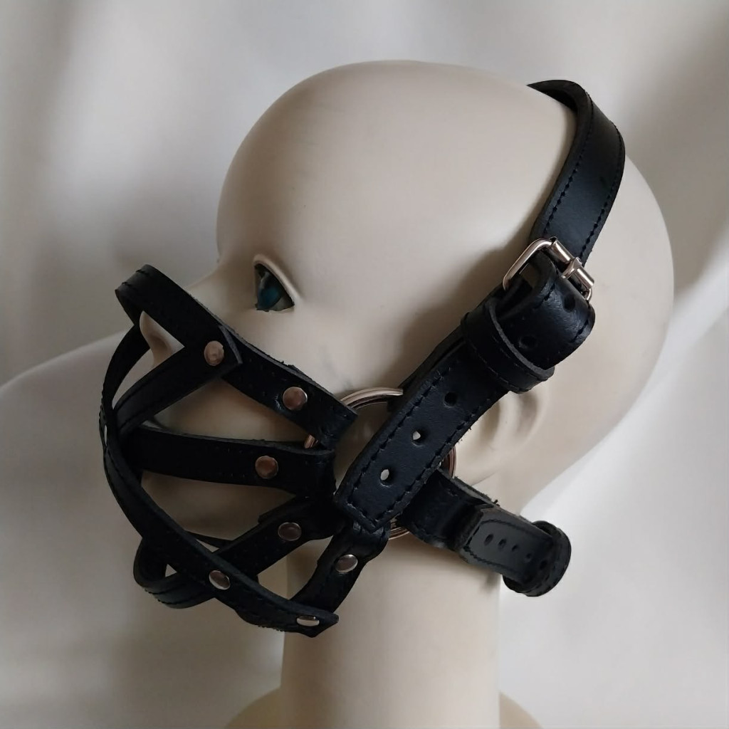 Complete your pet-play experience with this premium leather muzzle, ideal as a pet-play harness and BDSM accessory.