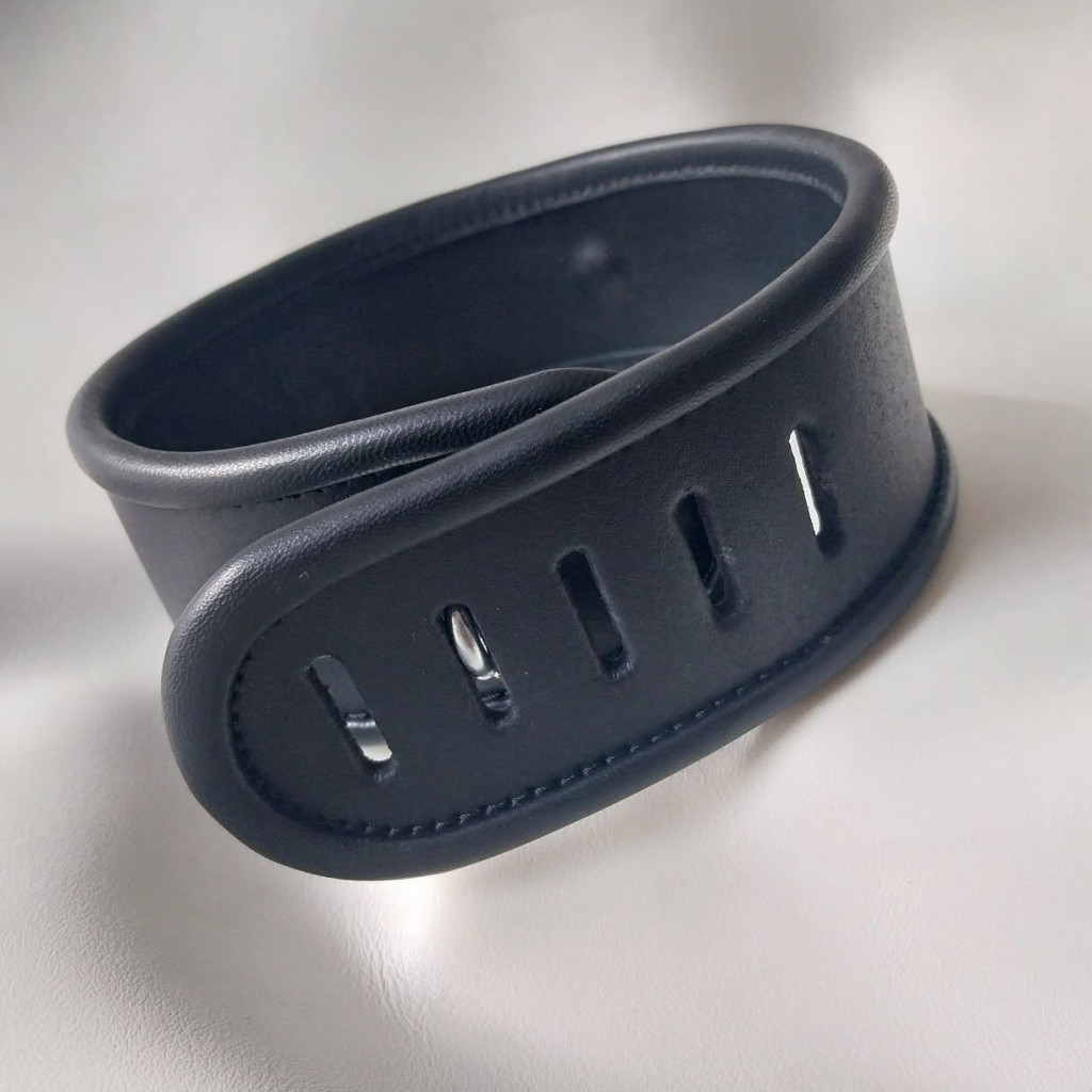 This custom-made black kinky collar combines quality and durability. Stainless steel fittings, soft inner lining, and precise handcrafted workmanship ensure a long-lasting and visually striking accessory.
