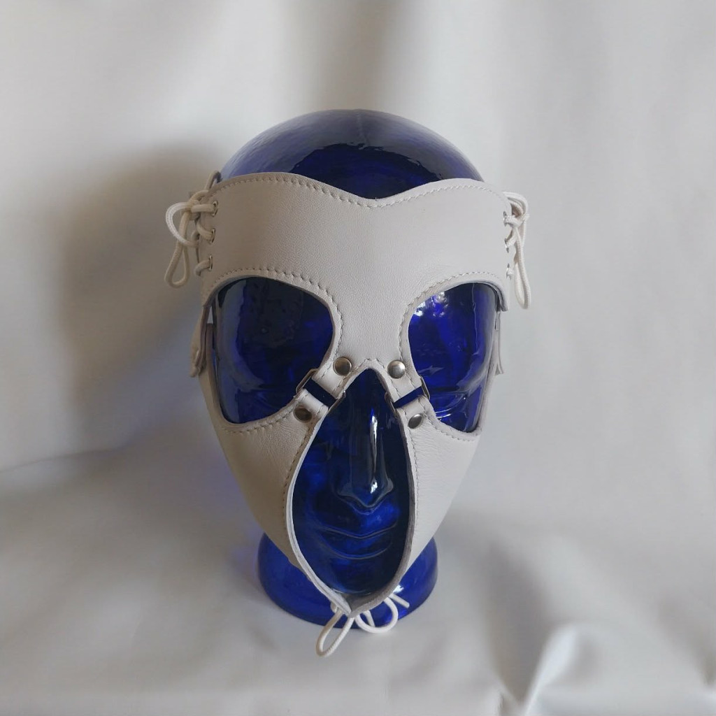 The white leather BDSM mask is the visual embodiment of elegance and control.
