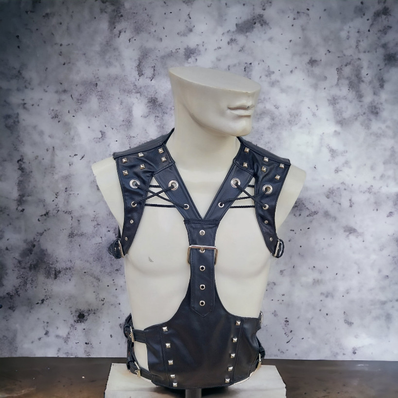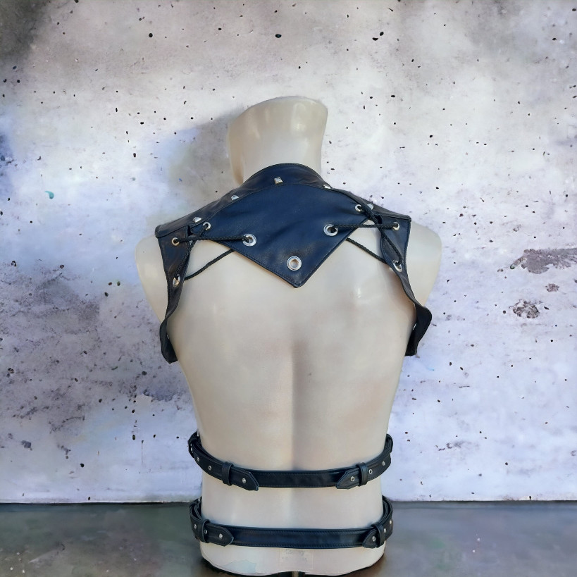 This gothic chest harness made from genuine goatskin combines comfort and style.